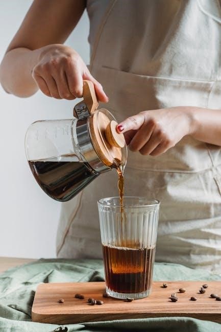 Regular cleaning and descaling are essential to maintain your Farberware Dual Coffee Maker’s performance and longevity. Start by wiping down the exterior with a soft, damp cloth daily. For the brew basket and carafe, wash them with warm soapy water after each use. Descaling is recommended every 3-6 months, depending on water hardness, to remove mineral buildup. Use a descaling solution or vinegar mixture, following the manual’s instructions. Run a cleaning cycle if available. After descaling, rinse thoroughly to ensure no residue remains. Regular maintenance prevents clogs and ensures optimal flavor. Always refer to the manual for specific guidance tailored to your model.