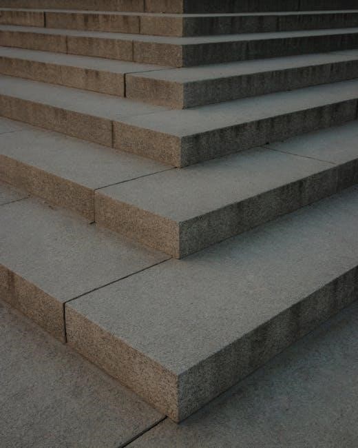 Compliance with these guidelines‚ detailed in the NC Building Code PDF‚ is essential for ensuring safe and accessible exterior steps.