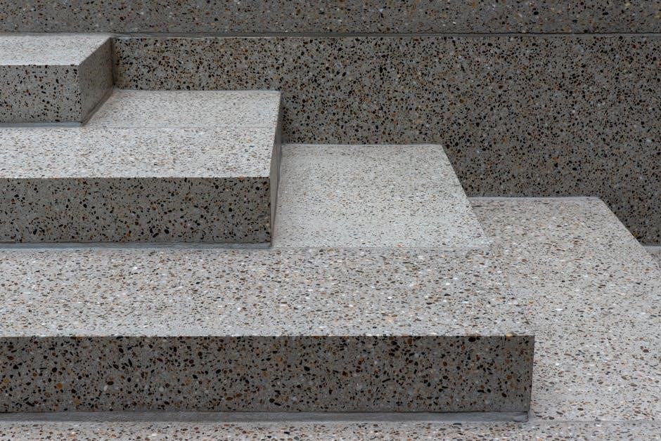 The code implicitly requires materials to maintain their structural integrity over time‚ preventing hazards like loose treads or unstable railings. Consideration should be given to freeze-thaw cycles‚ particularly with concrete‚ and the potential for material expansion and contraction. Proper material selection is paramount for ensuring safe and compliant exterior steps.